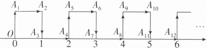 7[2024山东日照质检,中]如图,在纸面所在的平面内,一只电子蚂蚁从数轴上表示原点的位置O点出发,按向上、向右、向下、向右的方向依次不断移动,每次移动1个单位,其移动路线如图所示,第1次移动到$A_{1}$,第2次移动到$A_{2}$,第3次移动到$A_{3}$,···,第n次移动到$A_{n}$,则$\triangle OA_{2}A_{2020}$的面积是( )