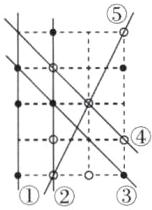 9[2025河北廊坊调研]如图,棋盘上有黑、白两色棋子若干,找出所有使三枚颜色相同的棋子在同一直线上的直线,满足这种条件的直线共有______.