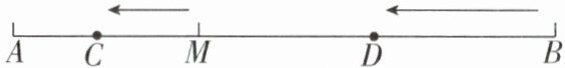 5 [较难]如图,M是定长线段AB上一定点,C,D两点分别从M,B出发,以$ 1cm/s $,$ 3cm/s $的速度沿直线BA向左运动,运动方向如箭头所示(C在线段AM上,D在线段BM上)。