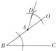 5[2024辽宁阜新海州区校级期中,中]如图,点$A是∠OBC的边BO$上一点,以$A$为顶点,射线$AO$为一边,在$∠OBC外用尺规作∠OAD$,使其等于$∠ABC$(不写作法,保留作图痕迹)。