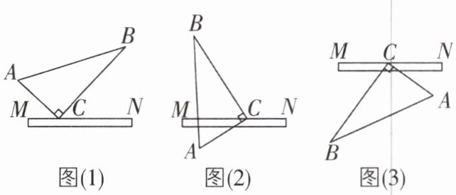 (3)当把这把直角三角板绕顶点C旋转到点A和点B都在直线MN的下方时(如图(3)),$∠ACM与∠BCN$的数量关系是____.