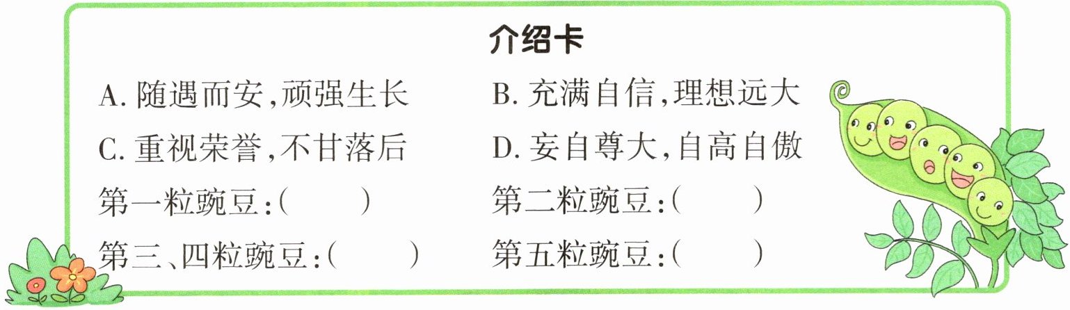 4 [新题型] 根据课文内容,选一选,填一填,完成豌豆的介绍卡。(填序号)
