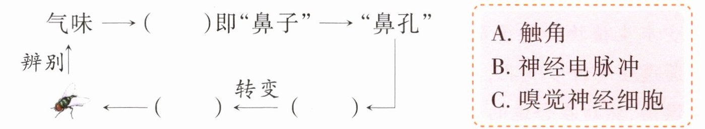 (1)[新题型] 根据短文内容,把苍蝇辨别气味的示意图补充完整。(填序号)