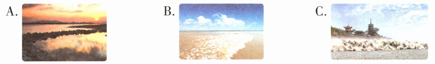 5 “潮涌”是杭州第19届亚运会的会徽,钱塘江和钱江潮头是会徽的形象核心。古往今来,无数文人写诗歌赞美钱塘江潮涌,请把下面对应的诗句连线。