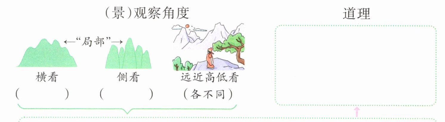 (1)[新题型] 读古诗《题西林壁》,补充下面的思维导图。(用自己的话概括)