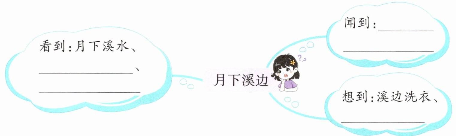 (2)看到:月下溪水、鹅卵石、水塘抱月 闻到:山草和野花的香味