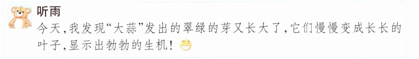 今天,我发现“大蒜”发出的翠绿的芽又长大了,它们慢慢变成长长的叶子,显示出勃勃的生机!😊
