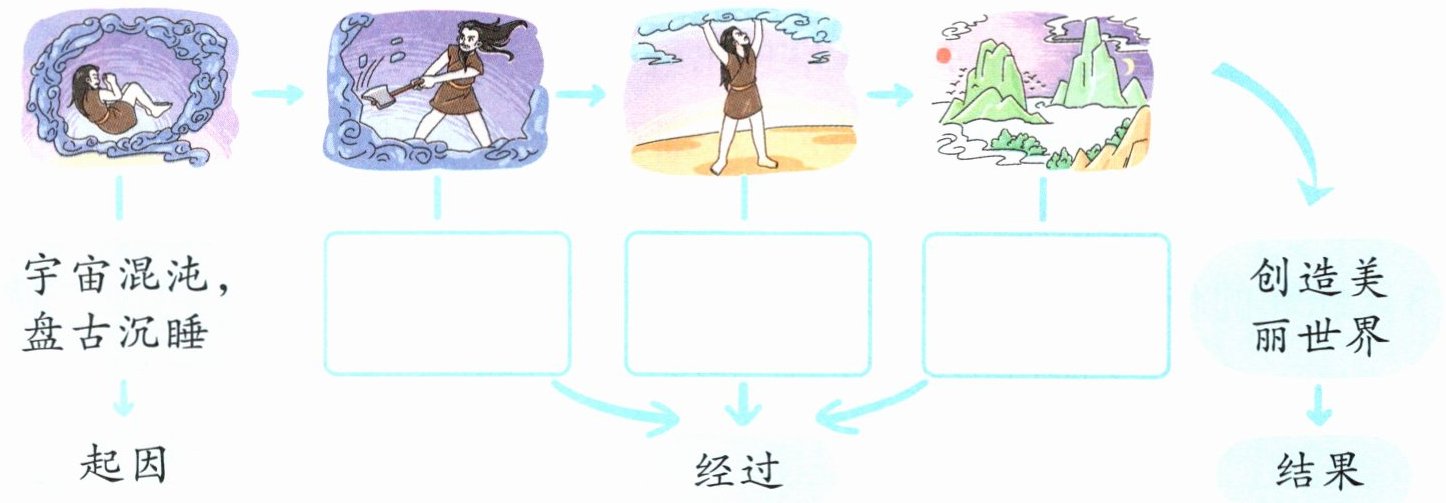 盘古醒来,开天辟地 盘古顶天立地 盘古倒下,化为万物