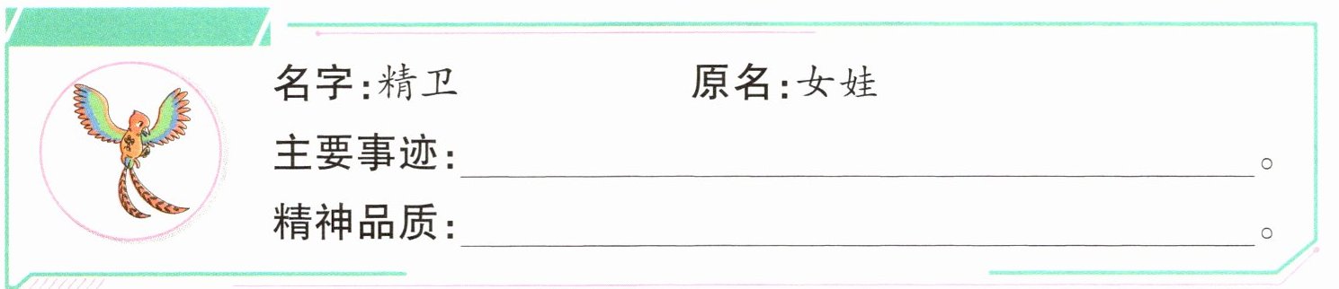 (4)在东海溺亡后,化为精卫,衔西山的树枝和石子填塞东海 坚韧执着