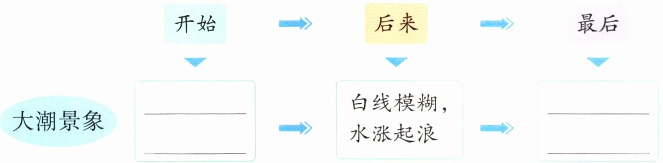(3)语文要素 读短文,想象画面,梳理大潮的变化过程,补充思维导图。