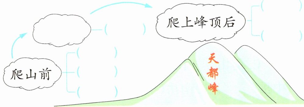 ①相互致谢 ②相互鼓励 ③山峰高陡 ④心生犹豫 ⑤奋力攀登 ⑥合影留念