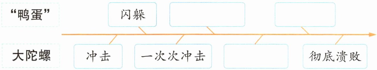 (2)君君整理了大陀螺与“鸭蛋”的交战过程,请你补充完整。