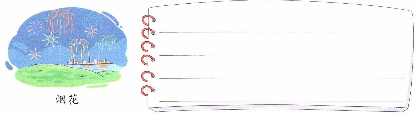 3 [新情境]丹丹观看了迎春焰火晚会,回家后想在日记中描绘烟花燃放的情景。请你用上框中的一两个词语,发挥想象帮她回顾一下烟花燃放的过程吧。
