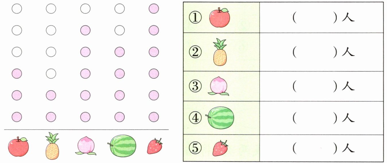 1 [生活情境] 二(2)班同学最喜欢吃的水果情况如下。(每个○代表1名同学)