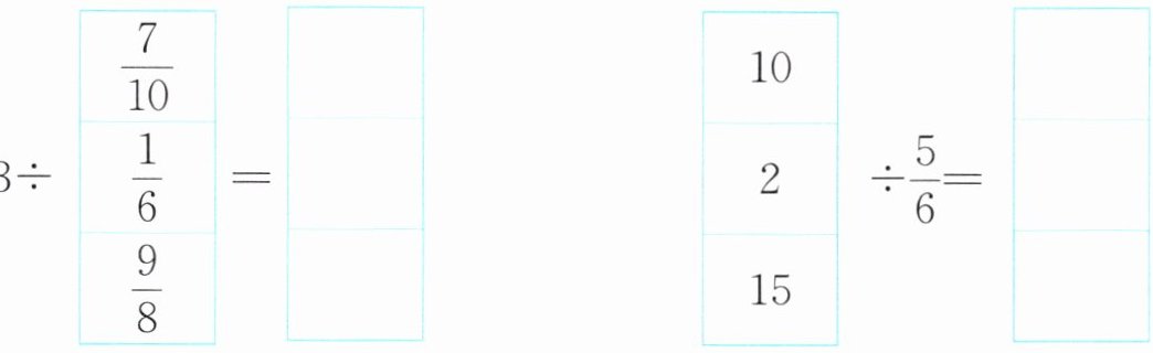 $\begin{array}{|l|}\hline 10 \\ \hline 2 \\ \hline 15 \\ \hline \end{array}\\ \hline ÷\frac{5}{6}= $