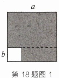 平方差公式可以利用图形来直观描述和解释。如图1,在边长为$a的大正方形中剪去一个边长为b的小正方形(a > b)$,若用两种不同的方法来表示阴影部分的面积,就能得到公式$(a + b)(a - b)= a^{2}-b^{2}$。
