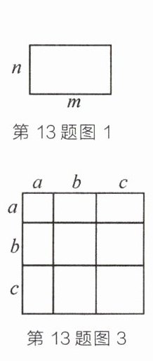 13. 2024沈阳和平区期末(1)如图1是一个长和宽分别为m,n的长方形纸片.它的长和宽分别增加a,b,得到如图2所示的长方形,用不同的方法表示这个长方形的面积,得到的等式为$(m+a)(n+b)= $____;