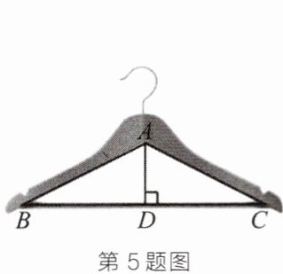5. 新考向·情境命题如图所示的衣架可以近似地看成一个等腰三角形ABC,其中AB= AC,AD⊥BC于点D.若BC= 44cm,则BD的长为( )