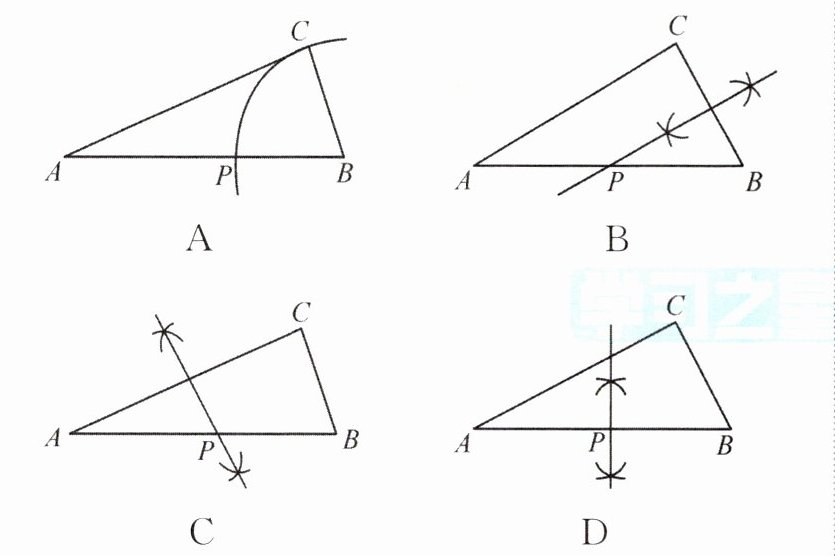 2. 新考向·操作性试题 已知△ABC(AC>BC),用尺规作图的方法在 AB 上确定一点 P,使 PA+PC= AB,则符合要求的作图痕迹是( )
