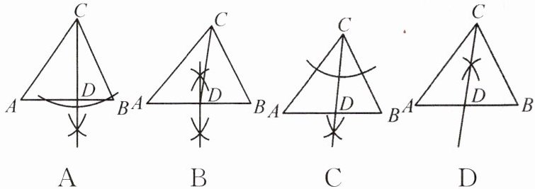 1. 新考向·操作性试题 观察下列作图痕迹,所作 CD 为△ABC 的边 AB 上的中线是( )