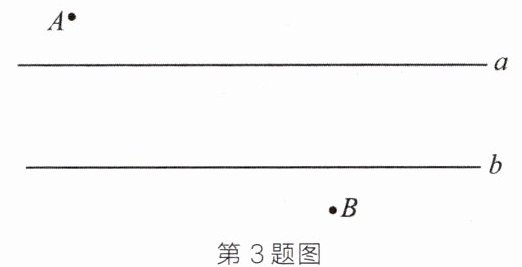 3. 教材变式 如图,村庄A,B位于一条小河的两侧,若河岸a,b互相平行,现在要建一座与河岸垂直的桥CD(点C,D分别在河岸a,b上,且桥CD要与河岸垂直),那么桥造在何处才能使A村到B村的路程最近?