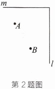 2. 教材变式 如图,小明与小刚在操场上画了两条直线l和m,二人约定比赛,先从A地跑到直线m上,再跑到直线l上,最后返回到B地,用时最短者获胜.请你为二人设计跑步的最优路线,在图中画出.