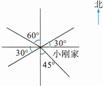学校在小刚家东偏北$30^{\circ}$的位置;