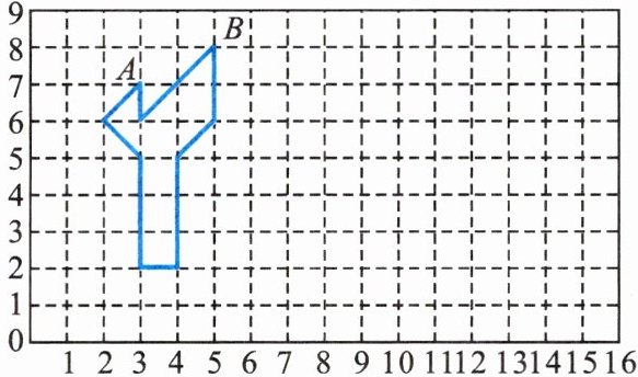 6. 如图,一个火炬的两个顶点用数对表示分别是$A(3,7)$,$B(5,8)$。将这个火炬向右平移8格后再向下平移1格,这时火炬的A,B两点的对应点分别为点E,F,用数对表示分别是E(