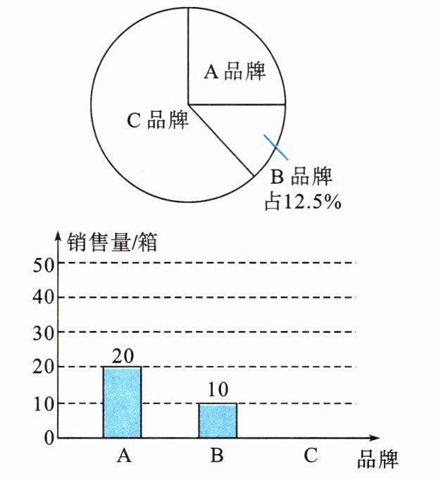 解:已知$B$品牌占$12.5\%$,$B$品牌销售量为$10$箱。