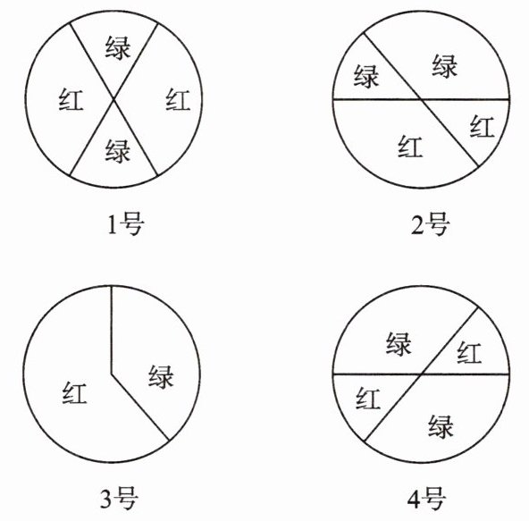 6. 如图有4个转盘,小明和小花做转盘游戏,指针停在红色区域算小明赢,指针停在绿色区域算小花赢。