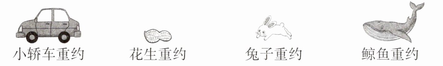 小轿车重约1( )。 花生重约3( )。 兔子重约2( )。 鲸鱼重约40( )。