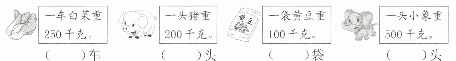 4. 把4200克、4千克、3500千克、6吨按从轻到重的顺序排列。(用“<”连接)