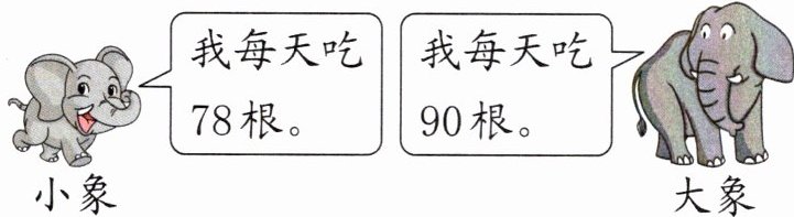 (2) 把78看作80 78<80 80×7=560(根) 78×7<560<600 这些香蕉够小象吃一个星期