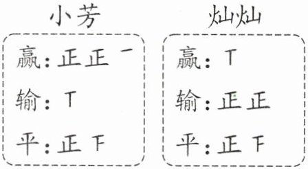 2. 新趋势 说理表达 小芳和灿灿比赛下棋。两人一共比赛了20场,观察下面的记录,谁的记录出错了? 请说明理由,并将错误的记录修改正确。