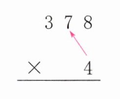 (1)竖式中的“7”和“4”相乘,表示( )。