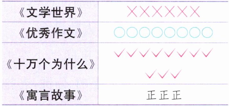 1. (生活应用)下面是三年级一班同学最喜欢阅读的图书情况记录表。