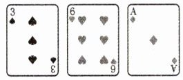 这3张扑克牌上的数算得24,列式为( )。(A代表1)