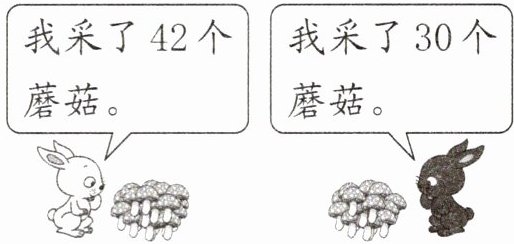 一共采了多少个蘑菇;这些蘑菇一共可以装几篮;(42+30)÷9=8(篮)