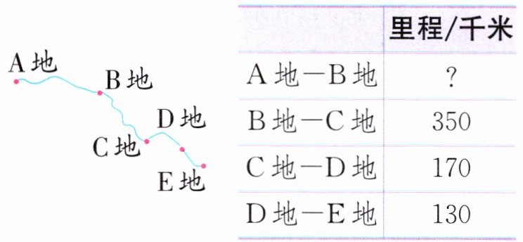 (1)$A地到C地的里程是700$千米,$A地到B$地的里程是( )千米。