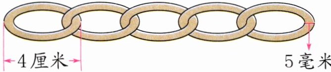 4.(思维过程)把$5$个大小相同的铁环连在一起(如图),拉紧后的总长度是( )厘米。