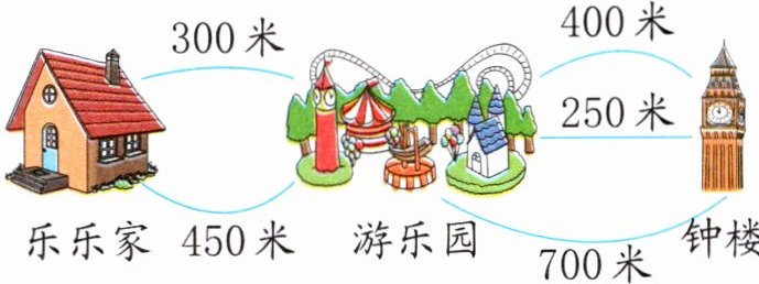 (2)乐乐从家到钟楼的最短路程是多少米?