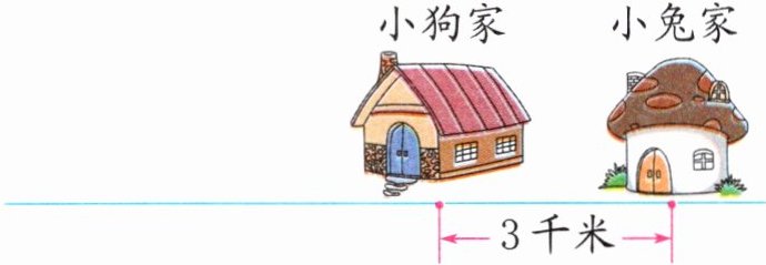 3. 小松鼠家距离小狗家正好是5000米,小松鼠家距离小兔家多少千米? 先画出小松鼠家的大致位置,再算一算。