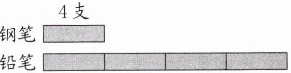 钢笔有( )支,铅笔的支数是钢笔的( )倍,铅笔有( )支。
