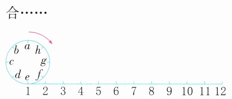 2. 轮子向前滚动时,点e正好和1重合,点f和2重合,点g和3重合……