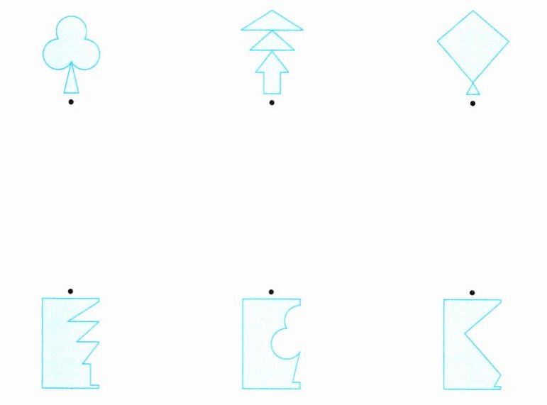 5. 下面的图案分别是从哪张纸上剪下来的?连一连。