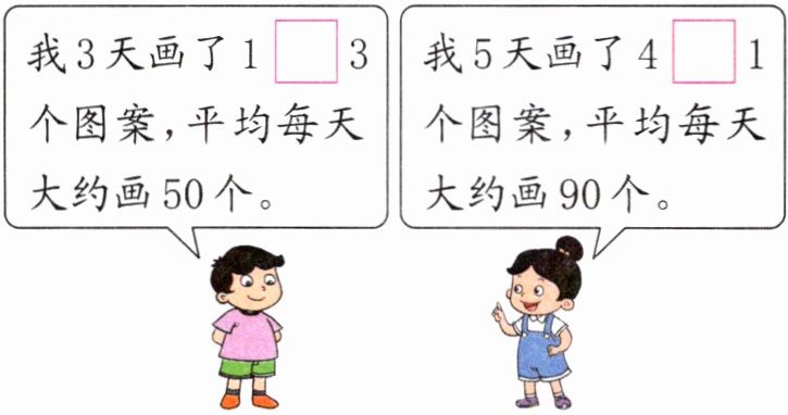 答案不唯一,如 5 5 解析:估算时,把被除数看作几百几十数,从而得到结果是整十数,根据被除数、除数和商的关系,可以倒着想,$50×3=150,90×5=450$,也就是两个被除数分别接近 150 和 450。