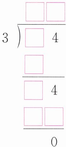 解析:根据余数是0,可知商个位上的数字与3的积的末位上是4。只有$3×8 = 24$符合,所以商的个位上是8且被除数十位上的数字除以3后余2。由$1×3 + 2 = 5$,$2×3 + 2 = 8$,得商十位上填1或2都符合题意。