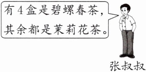 3. (地域特色)苏州茶叶品种繁多,如碧螺春茶、茉莉花茶等。张叔叔收藏了16盒茶叶,茉莉花茶的数量是碧螺春茶的几倍?