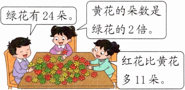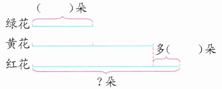 (3) 可以从问题出发,要求红花有多少朵,用黄花的朵数加上( ),所以要先求出( )。
