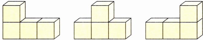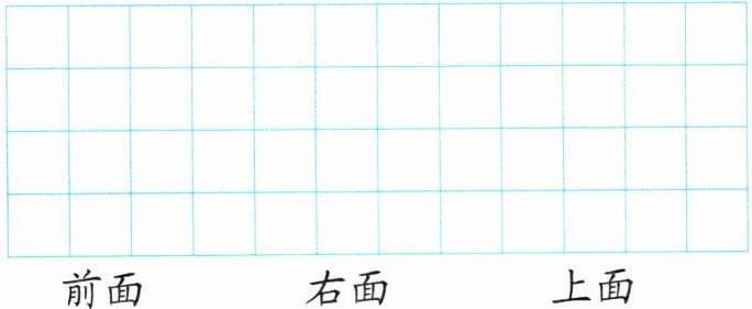 3. (几何直观)用4个同样大的正方体摆成下面的物体,在方格纸上画出从前面、右面和上面看到的图形。